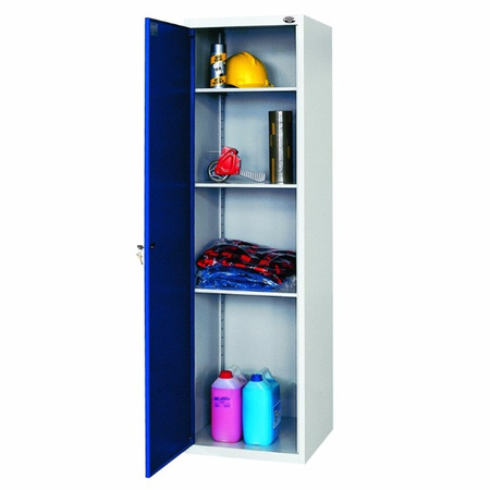 - - Wymiary szafy: szer.500 mm x głęb.500 mm x wys.1800 mm. - Wykonana z wysokiej jakości blachy stalowej. - Wewnątrz szafy 3 półki. - Możliwość regulacji półek co 4 cm. - Szafa zamykana na zamek.