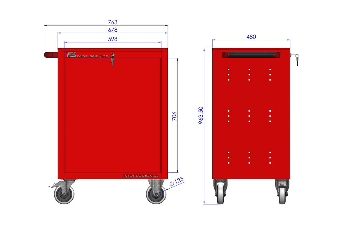 Stalowa blacha 1,0 mm, wzmocnienia podstawy 2,0 mm — radzi sobie z ciężkim osprzętem i narzędziami pomiarowymi.