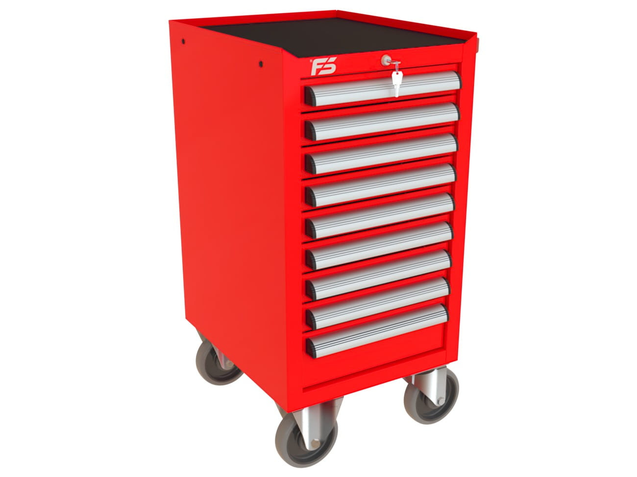 Ten sam kolor RAL co wózek MEGA, te same kółka i uchwyty — profesjonalny, spójny wygląd stanowiska. Szafy narzędziowe też dostępne w tych samych kolorach.