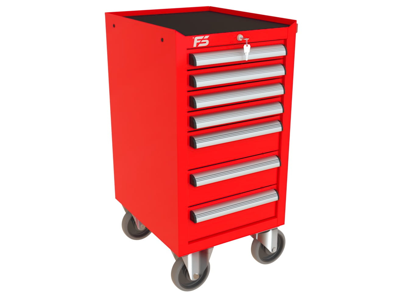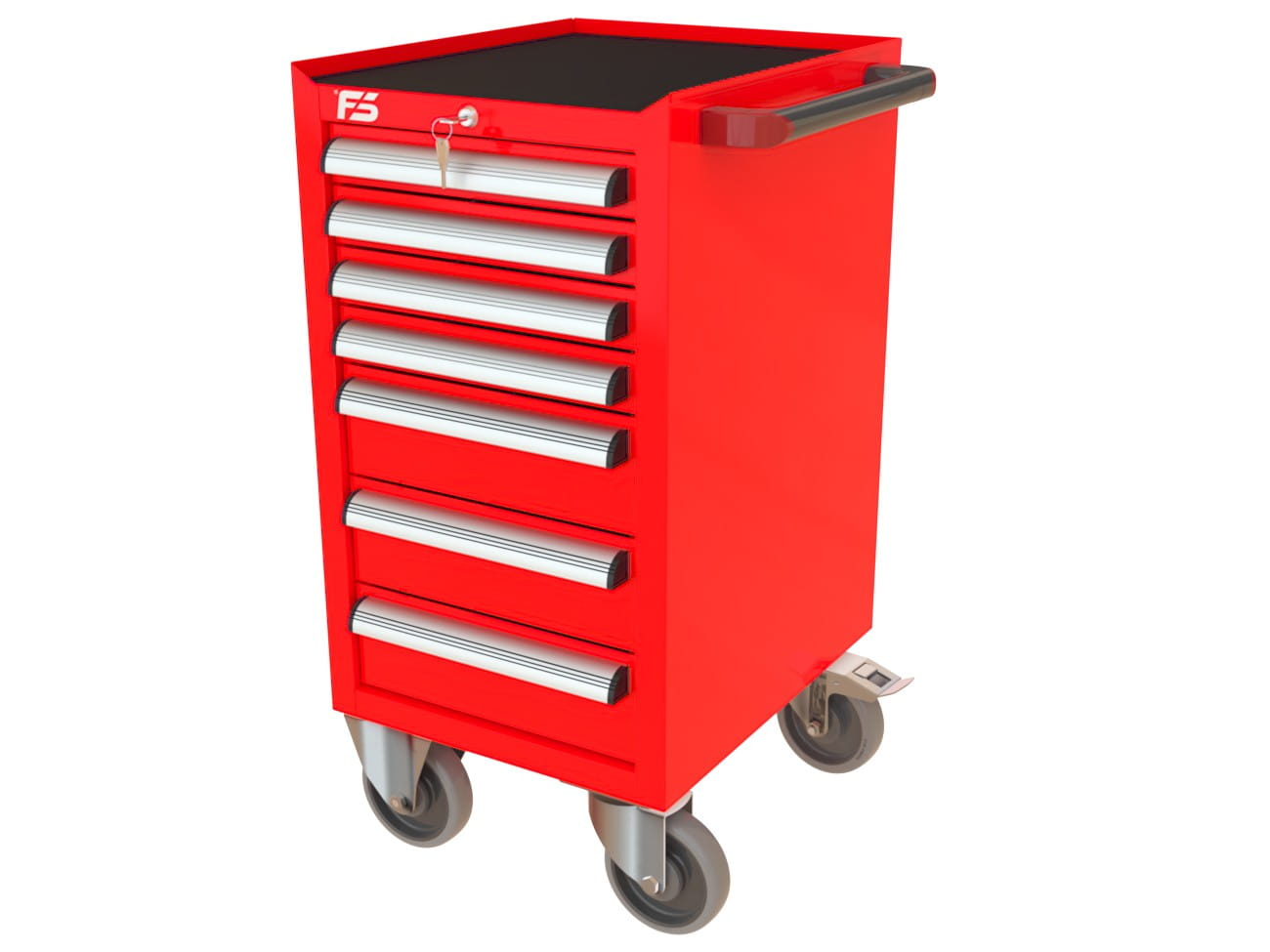 Ten sam kolor RAL co wózek MEGA, te same kółka i uchwyty — profesjonalny, spójny wygląd stanowiska. Szafy narzędziowe też dostępne w tych samych kolorach.