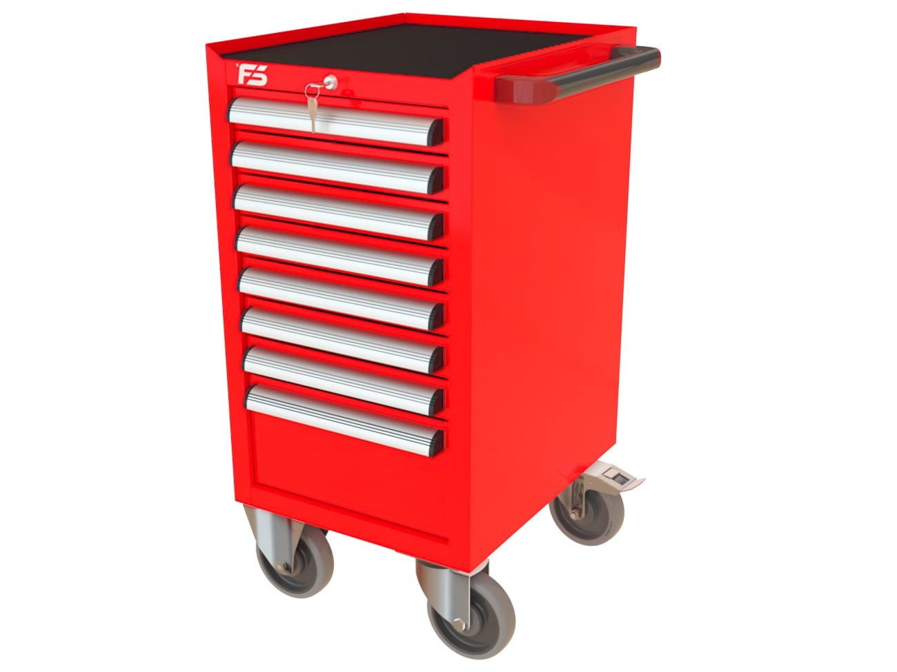 Ten sam kolor RAL co wózek MEGA, te same kółka i uchwyty — profesjonalny, spójny wygląd stanowiska. Szafy narzędziowe też dostępne w tych samych kolorach.