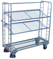 Wózek piętrowy z 3 półkami z siatki, ocynkowany VARIOfit sw-540.226