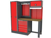 - Do garażu domowego lub małego serwisu najlepiej sprawdzi się seria MINI — kompaktowe stanowisko z szafką 3-szufladową, tablicą perforowaną NT140 i szafą z półkami. Ceny od 10 577 zł netto. Zajmuje mało miejsca, a daje pełen porządek narzędzi.