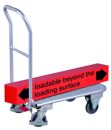 Wymiary zew.: 995 x 600 x 990 mm (szer./gł./wys.) Powierzchnia użytkowa: 900 x 600 mm (szer./gł.) Wysokość załadunkowa: 270 mm Wysokość rury w pałąku: 365 mm (od górnej krawędzi powierzchni użytkowej) Wykonanie: * składany pałąk * powierzchnia użytkowa z blachy ryflowanej Koła: Koła z gumy szarej termoplastycznej, felga z tworzywa, precyzyjne łożysko kulkowe, bezśladowe, Ø 160 mm, 2 obrotowe z centralnym hamulcem EasySTOP i 2 stałe, koła obrotowe z osłoną stopy Nośność: 150 kg EAN-Nr.: 4035694006430