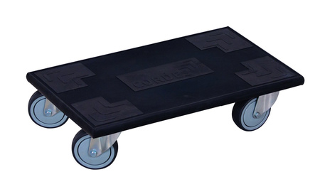 Wymiary zew.: 600 x 350 x 145 mm (szer./gł./wys.) Powierzchnia użytkowa: 600 x 350 mm (szer./gł.) Wykonanie: * z nakładką gumową, przebiegająca dookoła guma chroni ściany i drzwi * płyta sklejka 18 mm Koła: Koła z gumy szarej termoplastycznej, felga z tworzywa, precyzyjne łożysko kulkowe, bezśladowe, Ø 100 mm, 4 koła obrotowe, każde z kół przykręcone 4 śrubami do płyty Nośność: 300 kg EAN-Nr.: 4035694011786 * lpg-100.023 *