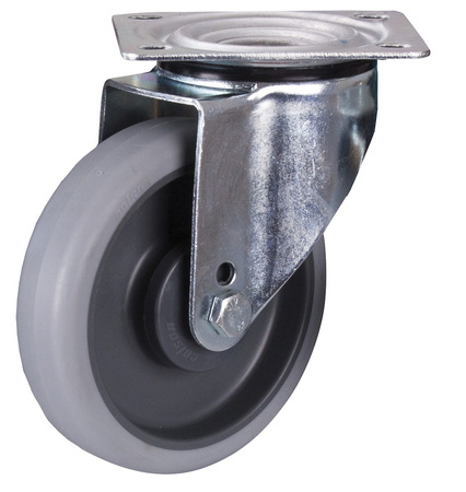 160 x 40 mm, szare (termoplastyczne) z termoplatycznym bieżnikiem na feldze poliamidowej z precyzyjnym łożyskiem kulkowym z osłoną przeciwwłókienną Twardość Shore: 65° + 5° Shore A Odporne na temperatury od -20°/+80°C Wysokość całkowita koła: 190 mm Rozmiar płytki: 110 x 4 x 135 mm Rozstaw otworów: 75/80 x 105 mm Nośność: 200 kg EAN-Nr.: 4035694039988