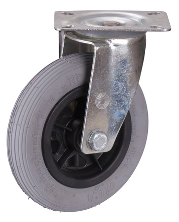 150 x 30 mm, szare (pneumatyczne) na feldze stalowej z łożyskiem wałeczkowym z profilem rowkowym Wysokość całkowita koła: 178 mm Rozmiar płytki: 80 x 4 x 105 mm Rozstaw otworów: 75/80 x 60 mm Ciśnienie: 2,5 bara Nośność: 50 kg EAN-Nr.: 4035694042506