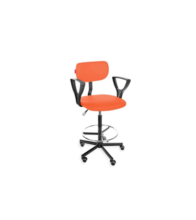- Krzesło przemysłowe Black Eco H+RING PD WH, tapicerowane ekoskóra, podłokietniki, podnóżek, na kółkach. Regulacja 530-700 mm. Nośność 150 kg. Gwarancja 3 lata. Polska produkcja ROSART.