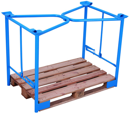 Wymiary wew.: 1.200 x 800 mm (szer./gł.) do palety o wymiarach: 1.200 x 800 mm (szer./gł.) Wysokość użytkowa: 1.000 mm Wykonanie: * solidna stalowa konstrukcja * do montażu na załadowanej już palecie * blokowanie elementów ramy poprzez zaciski ręczne * 4 talerze do bezpiecznego sztaplowania * składana Kolor: RAL 5012 jasnoniebieski malowanie proszkowe Udźwig: 1.500 kg 3 razy sztaplowana, spiętrowanych nadstawek nie należy przemieszczać EAN-Nr.: 4035694012875