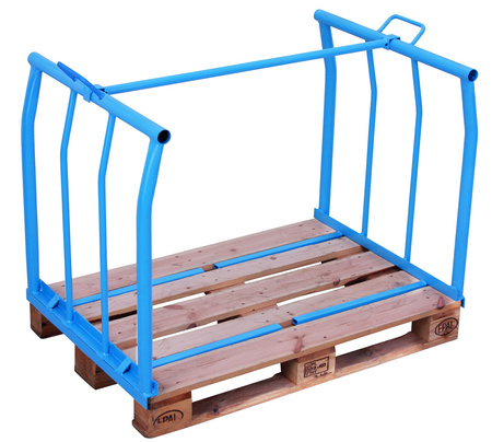 Wymiary wew.: 1.130 x 1.000 mm (szer./gł.) do palety o wymiarach: 1.200 x 1.000 mm (szer./gł.) Wysokość użytkowa: 770 mm Wykonanie: * solidna konstrukcja stalowa * rura połączeniowa stabilizująca ramę * składana Kolor: RAL 5012 jasnoniebieski malowanie proszkowe Udźwig: 500 kg 4 razy sztaplowana, spiętrowanych nadstawek nie należy przemieszczać EAN-Nr.: 4035694002289