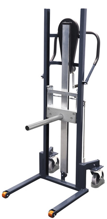 Wymiary zew.: 620 x 730 x 1.545 mm (szer./gł./wys.) Długość trzpień: 450 mm średnica: 43 mm Wykonanie: * spawana konstrukcja stalowa * zakres podnoszenia od 55 - 1.300 mm regulowany bezstopniowo przy pomocy ręcznej korbki * korbka z samoblokującym gwintem * środek ciężkości: 250 mm od masztu * drążek hamulca na ergonomicznej wysokości, hamulec działa na koła z pełnej gumy * duży pałąk dla lekkiego i łatwego manewrowania * pałąk z miękką powłoką uchwytu Kolor: RAL 7016 szary antracytowy, malowanie proszkowe Koła: 2 koła obrotowe z gumy termoplastycznej, felga z precyzyjnym łożyskiem kulkowym, szare, bezśladowe, Ø 160 mm oraz z przodu 2 koła stałe z poliuretanu Ø 50 mm, koła obrotowe z osłoną stopy Nośność: 250 kg EAN-Nr.: 4035694102361