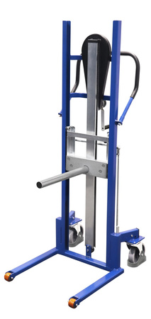 Wymiary zew.: 620 x 730 x 1.545 mm (szer./gł./wys.) Długość trzpień: 450 mm średnica: 43 mm Wykonanie: * spawana konstrukcja stalowa * zakres podnoszenia od 55 - 1.300 mm regulowany bezstopniowo przy pomocy ręcznej korbki * korbka z samoblokującym gwintem * środek ciężkości: 250 mm od masztu * drążek hamulca na ergonomicznej wysokości, hamulec działa na koła z pełnej gumy * duży pałąk dla lekkiego i łatwego manewrowania * pałąk z miękką powłoką uchwytu Kolor: RAL 5010 niebieski, malowanie proszkowe Koła: 2 koła obrotowe z gumy termoplastycznej, felga z precyzyjnym łożyskiem kulkowym, szare, bezśladowe, Ø 160 mm oraz z przodu 2 koła stałe z poliuretanu Ø 50 mm, koła obrotowe z osłoną stopy Nośność: 250 kg EAN-Nr.: 4035694102354