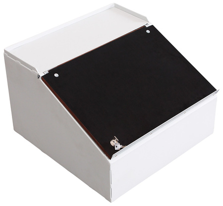 Wymiary zew.: 490 x 500 x 325 mm (szer./gł./wys.) Wykonanie: * Możliwość ustawienia na wózku * Płyta do pisania otwierana, zdejmowana i zamykana * Płyta do pisania z wodoodpornej sklejki * Krawędź: 11 mm Kolor: RAL 7035 jasnoszary, malowanie proszkowe EAN-Nr.: 4035694102811