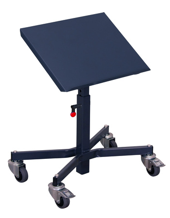 Wymiary zew.: 600 x 410 x 520 - 775 mm (szer./gł./wys.) Powierzchnia użytkowa: 510 x 410 mm (szer./gł.) Wykonanie: * konstrukcja z profili stalowych * nachylany pod kątem 15° i 30° * powierzchnia użytkowa z 22 mm rantem z jednej strony * przystosowany do skrzynek z tworzywa i drucianych koszy * blokowany za pomocą rygla sprężynowego * regulowana wysokość: 500 – 755 mm, w odstępach co 25 mm Kolor: RAL 7024 grafitowy, malowanie proszkowe farbą przewodzącą ładunki elektryczne Koła: Koła z przewodzącej elektryczność, pełnej gumy termoplastycznej, szare, precyzyjne łożysko kulkowe, Ø 80 mm, 2 obrotowe i 2 z hamulcem Nośność: 150 kg EAN-Nr.: 4035694046221
