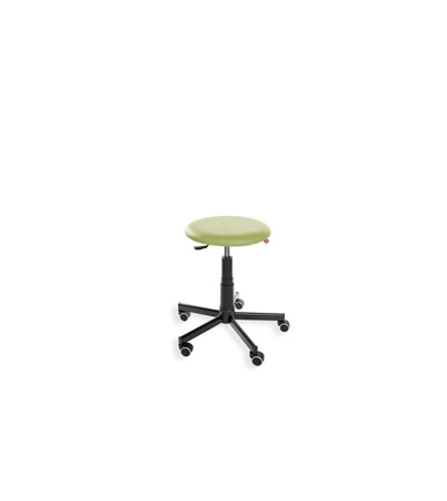 Przemysłowy taboret obrotowy BlackTab Eco WH z ekoskórą — elegancką, łatwą do czyszczenia i odporną na wilgoć, na kółkach. Regulacja wysokości amortyzatorem gazowym. Wersja na kółkach umożliwia łatwe przemieszczanie między stanowiskami. Atest obciążenia do 150 kg. Polska produkcja ROSART.