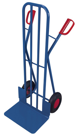 Wymiary zew.: 570 x 585 x 1.310 mm (szer./gł./wys.) Wymiar łopaty: 480 x 300 mm (szer./gł.) Wykonanie: * stabilna, spawana konstrukcja * 2 uchwyty ochronne z tworzywa * z 2 błotnikami Kolor: RAL 5010 niebieski, malowanie proszkowe Koła: Koła pneumatyczne na feldze stalowej z precyzyjnym łożyskiem kulkowym, czarne, Ø 260 x 85 mm Nośność: 250 kg EAN-Nr.: 4035694007581