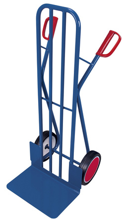 Wymiary zew.: 570 x 585 x 1.310 mm (szer./gł./wys.) Wymiar łopaty: 480 x 300 mm (szer./gł.) Wykonanie: * stabilna, spawana konstrukcja * 2 uchwyty ochronne z tworzywa * z 2 błotnikami Kolor: RAL 5010 niebieski, malowanie proszkowe Koła: Koła z gumy pełnej na specjalnej feldze z tworzywa, z precyzyjnym łożyskiem kulkowym, czarne, Ø 260 x 65 mm Nośność: 250 kg EAN-Nr.: 4035694007598
