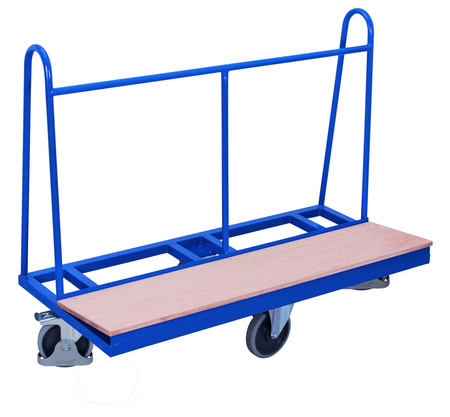 Wymiary zew.: 1.500 x 680 x 1.200 mm (szer./gł./wys.) Powierzchnia użytkowa: 1.500 x 370 mm (szer./gł./wys.) Wysokość pałaków bocznych mierzona od górnej krawędzi ramy: 915 mm Wysokość poziomego pałąka mierzona od górnej krawędzi ramy: 750 mm Wykonanie: * rama podłogi spawana z rur prostokątnych * nadbudowa z rur okrągłych przyspawana do ramy podłogi * z pionową rurą na środku * szerokość powierzchni użytkowej załadunkowa ok 370 mm, nachylona pod kątem 5° * powierzchnia użytkowa z płyty sklejki Kolor: RAL 5010 niebieski, malowanie proszkowe Koła: Koła z gumy szarej termoplastycznej, felga z tworzywa, precyzyjne łożysko kulkowe, bezśladowe, Ø 200 mm, 2 z hamulcem i 2 stałe, koła z hamulcem z osłoną stopy, płytki kół montowane w ukadzie rombowym Nośność: 500 kg EAN-Nr.: 4035694010727