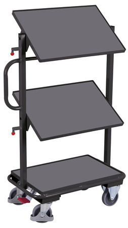 Wózek na skrzynki z 3 półkami, półki nachylane, RAL 7016 VARIOfit sw-400.803/AG