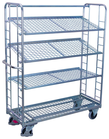 Wózek piętrowy, ocynkowany z 4 półkami z siatki VARIOfit sw-640.218