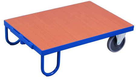 Wymiary zew.: 1.005 x 695 x 285 mm (szer./gł./wys.) Powierzchnia użytkowa: 995 x 695 mm (szer./gł.) Wysokość załadunkowa: 285 mm Wykonanie: * spawana konstrukcja z profili i rur stalowych * 2 podpory * panewka kulista bez zabezpieczenia ryglowania * powierzchnia użytkowa z płyty MDF, okleina dekor bukowy Kolor: RAL 5010 niebieski malowanie proszkowe Koła: Koła z gumy szarej termoplastycznej, felga z tworzywa, precyzyjne łożysko kulkowe, bezśladowe, Ø 200 mm, 2 stałe Nośność: 500 kg EAN-Nr.: 4035694004078
