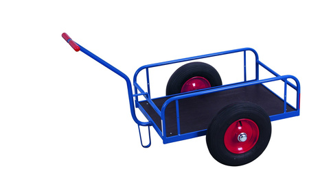 Wymiary zew.: 1.770 x 910 x 860 mm (szer./gł./wys.) Powierzchnia użytkowa: 1.000 x 635 mm (szer./gł.) Wysokość załadunkowa: 225 mm Wysokość ścian czołowych: 145 mm Wysokość długich ścian: 245 mm Wykonanie: * spawana konstrukcja z profili i kątowników stalowych * 2 czerwone nakładki na uchwycie * z ręcznym dyszlem * powierzchnia użytkowa z płyty sklejki film/antypoślizg, wodoodpornej (antypoślizg u góry) Kolor: RAL 5010 niebieski malowanie proszkowe Koła: Koła pneumatyczne, na feldze stalowej z precyzyjnym łożyskiem kulkowym, czarne, Ø 400 x 100 mm Nośność: 400 kg EAN-Nr.: 4035694007697