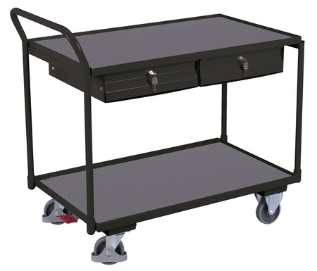 Wózek stołowy z 2 powierzchniami użytkowymi i 2 szufladami, RAL 7016 VARIOfit sw-600.503/AG