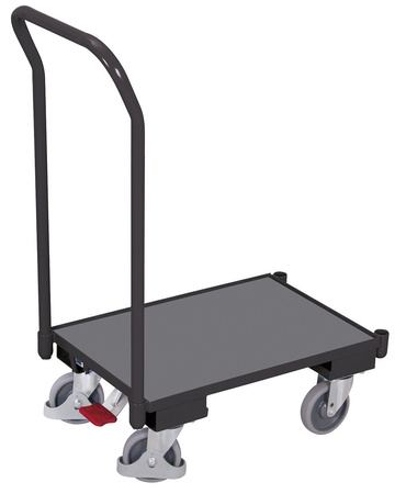 Wymiary zew.: 740 x 415 x 1.000 mm (szer./gł./wys.) Powierzchnia użytkowa: 605 x 410 mm (szer./gł.) Wysokość załadunkowa: 225 mm Wykonanie: * przystosowany do skrzynek typu Euro 600 x 400 mm (szer./gł.) * z pałąkiem * powierzchnia użytkowa umieszczona w ramie z z kątownika z 10 mm krawędzią * powierzchnia użytkowa z płyty MDF, okleina ciemnoszara Kolor: RAL 7016 szary antracytowy, malowanie proszkowe Koła: Koła z gumy szarej termoplastycznej, felga z tworzywa, precyzyjne łożysko kulkowe, bezśladowe, Ø 125 mm, 4 koła obrotowe w tym 2 z centralnym hamulcem EasySTOP i osłoną stopy Nośność: 250 kg EAN-Nr.: 4035694078819