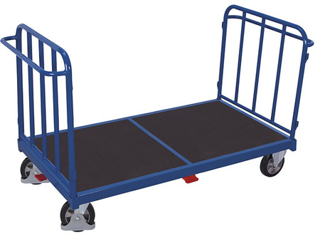 Wymiary zew.: 1.575 x 900 x 1.105 mm (szer./gł./wys.) Powierzchnia użytkowa: 1.305 x 880 mm (szer./gł.) Wysokość załadunkowa: 305 mm Wykonanie: * stabilna, stalowa konstrukcja * z 2 burtami czołowymi, wtykanymi, wysokość użytkowa: 800 mm * powierzchnia użytkowa z antypoślizgowej sklejki Kolor: RAL 5010 niebieski malowanie proszkowe Koła: Koła z elastycznej gumy pełnej na feldze aluminiowej z precyzyjnym łożyskiem kulkowym, czarne, Ø 200 mm, 2 stałe i 2 z hamulcem. Koła z hamulcem z osłoną stopy Nośność: 1.200 kg EAN-Nr.: 4035694004702