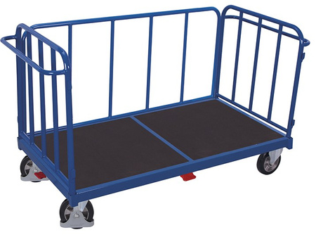Wymiary zew.: 1.875 x 900 x 1.105 mm (szer./gł./wys.) Powierzchnia użytkowa: 1.605 x 845 mm (szer./gł.) Wysokość załadunkowa: 305 mm Wykonanie: * stabilna, stalowa konstrukcja * z 2 czołowymi i 1 długą burtą, wtykanymi, wysokość użytkowa: 800 mm * powierzchnia użytkowa z antypoślizgowej sklejki Kolor: RAL 5010 niebieski malowanie proszkowe Koła: Koła z elastycznej gumy pełnej na feldze aluminiowej z precyzyjnym łożyskiem kulkowym, czarne, Ø 200 mm, 2 stałe i 2 z hamulcem. Koła z hamulcem z osłoną stopy Nośność: 1.200 kg EAN-Nr.: 4035694006737