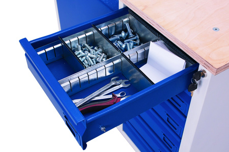 dla sw-985.000, sw-985.001, sw-985.002 i sw-985.003 Wymiary: 290 x 473 x 65 mm (szer./gł./wys.) z ocynkowanej blachy stalowej, wkładany 3 przegrody wzdłużne i 8 przegródek EAN-Nr.: 4035694011694