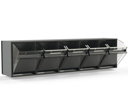 - mocowanie zestawu pojemników do podstawy przy pomocy zintegrowanej prowadnicy