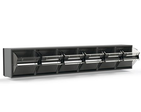 - - zestaw składa się z podstawy wykonanej z blachy stalowej oraz uchylanych szufladek zamkniętych w pojemniku z tworzywa sztucznego - mocowanie zestawu pojemników do podstawy przy pomocy…